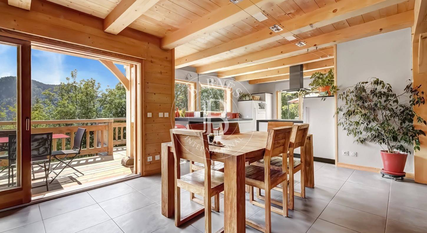 Au c½ur de la vallée des Aravis, à 5 minutes du Grand-Bornand et de La Clusaz ce chalet récent de 2013 offre un emplacement idéal pour profiter pleinement de la montagne et du ski. Il est situé en surplomb avec une exceptionnelle vue sur la vallée de Thônes. Ses 255m2 habitables proposent 5 chambres, 2 salles de bains, 1 salle d'eau et un bel espace de réception donnant sur une terrasse de 50m2. À Une heure de l'aéroport de Genève.